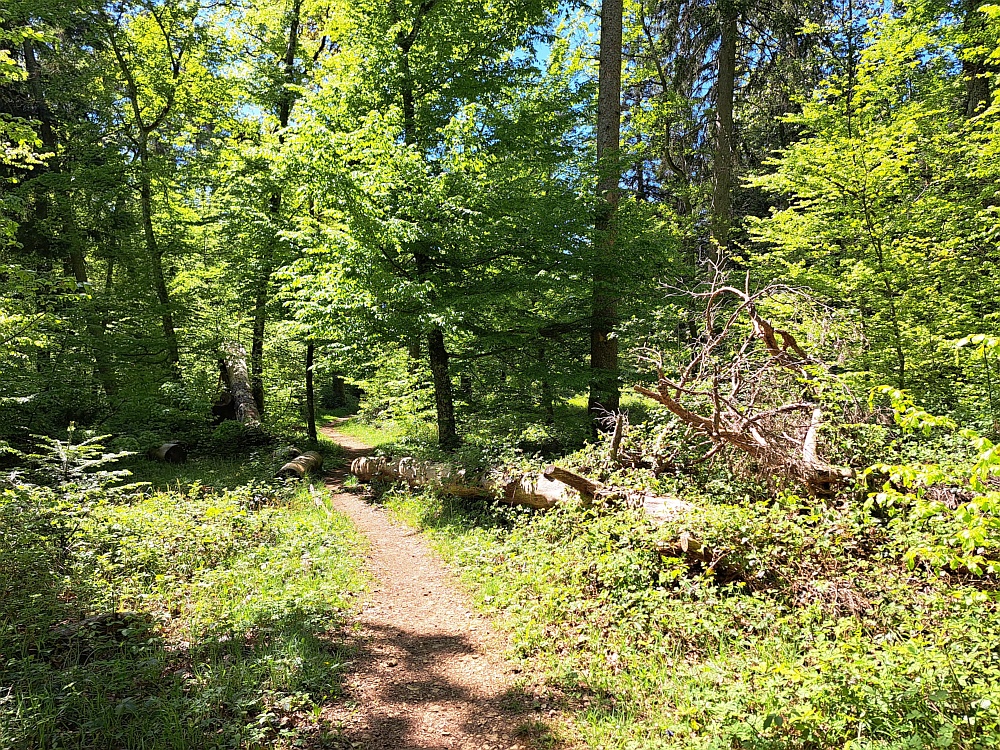 Richtung haltend, folgen wir dem breiten Waldweg, der am Schluss