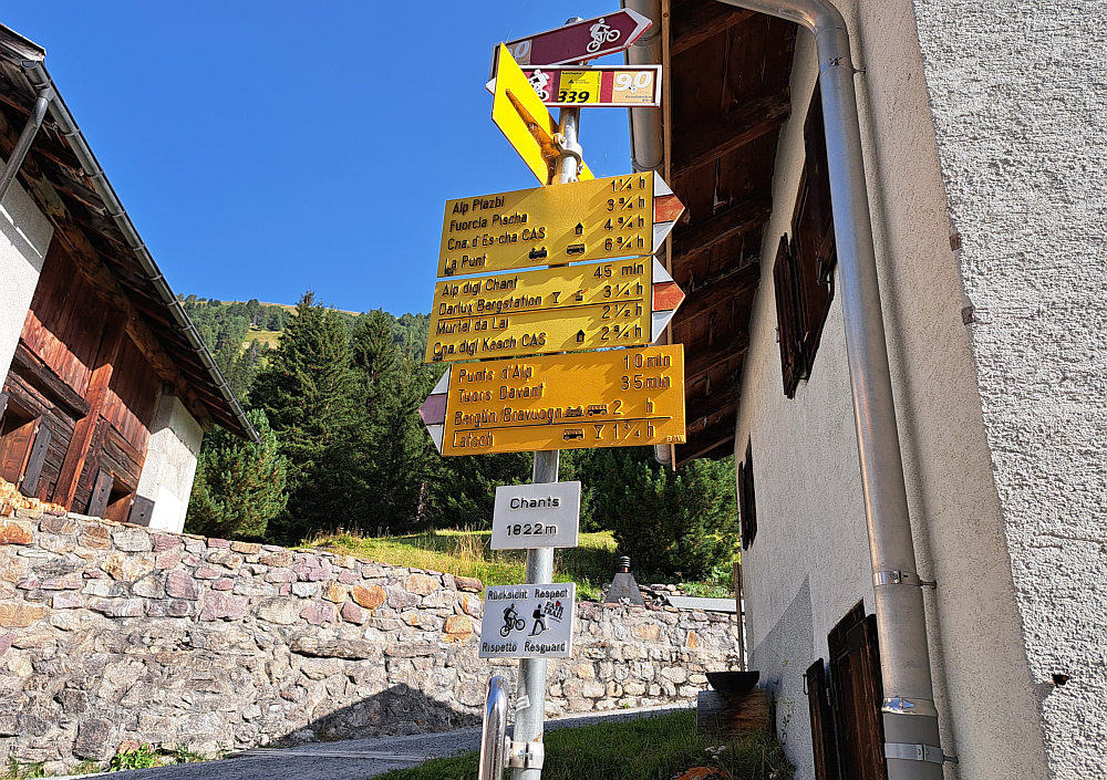 (Plan da Gudienziel), mit Sicht ins Tal mit Latsch und Bergün. Nach