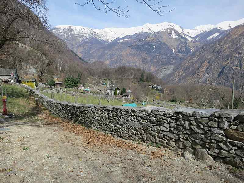 Kurz darauf beim Waldausgang gehts auf Teersträsschen via "Terra di Fuori" nach Aurigeno zur Übernachtung.