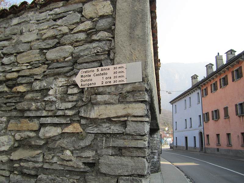 rechts der Wanderweg ab Richtung "Capela Bondietti"/Aurigeno.