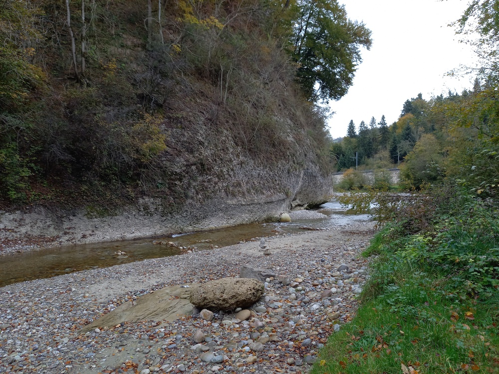 Es ist noch zu früh, um bereits in Entlebuch in einer der Beizen einzukehren, so reizvoll diese auch sind. Also ziehe ich weiter, nach dem Bahnhof rechts runter, über die Zwischenwassernbrücke. Nach einem kurzen Aufstieg geht der Weg wieder gemächlich an der murmelnden Kleinen Emme entlang. Die wenigen Steigungen sind leicht zu bewältigen. Vor Hasle dann eine weitere Überraschung: ein Kinderspielplatz, der keine Wünsche offen lässt - inklusive Grillgelegenheit und Gratisholz.