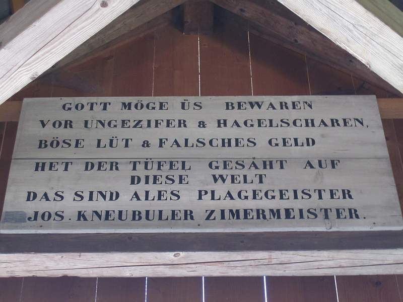 In unmittelbarer Nähe des Flusses stosse ich an der Strasse nach Doppleschwand auf den Pizza-Wagen von Didian Fräcks. Fräcks, der international bekannte Fakir. Ein Feuerschlucker, der eine Pizzeria mit Holzofenbäckerei an einem Fluss betreibt. Feuer hat ihn ein Leben lang gefesselt. Heute knistert im Kachelofen des stimmungsvollen Gaststübleins ein Holzfeuerchen, während ich einen Kaffee nehme und mir vorzustellen versuche, wie die harmlose Kleine Emme im letzten August innert Minuten zum reissenden Wolf wurde und sich sehr nahe an das Haus heranfrass. Nun gluckst und plätschert das Wasser wieder friedlich, als ich in Richtung Kappelbodenbrücke weiterziehe.