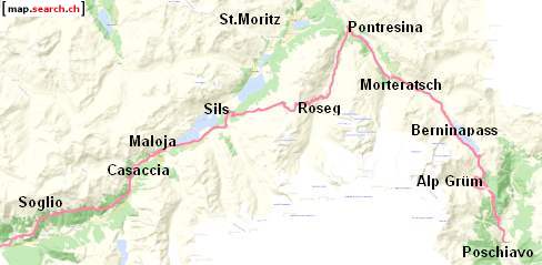 Poschiavo* 1012m - Cadera* 1383m (1h15) - Motta di Cadera 1500m (30min) - Puntalta 1680m (35min) - Gletschergarten - Cavaglia* 1703m (40min) - Alp Grüm* 2091m (1h20) |