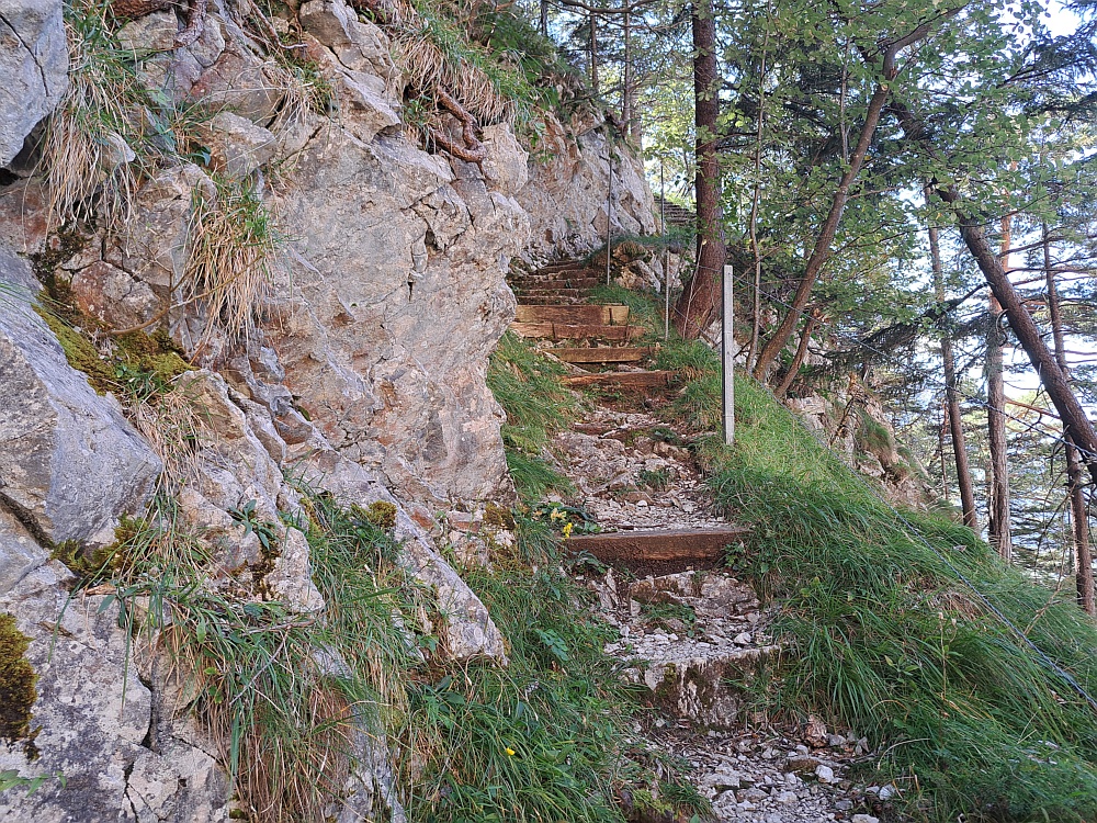 Treppenstufen, die teils in Fels gehauen sind, gehts