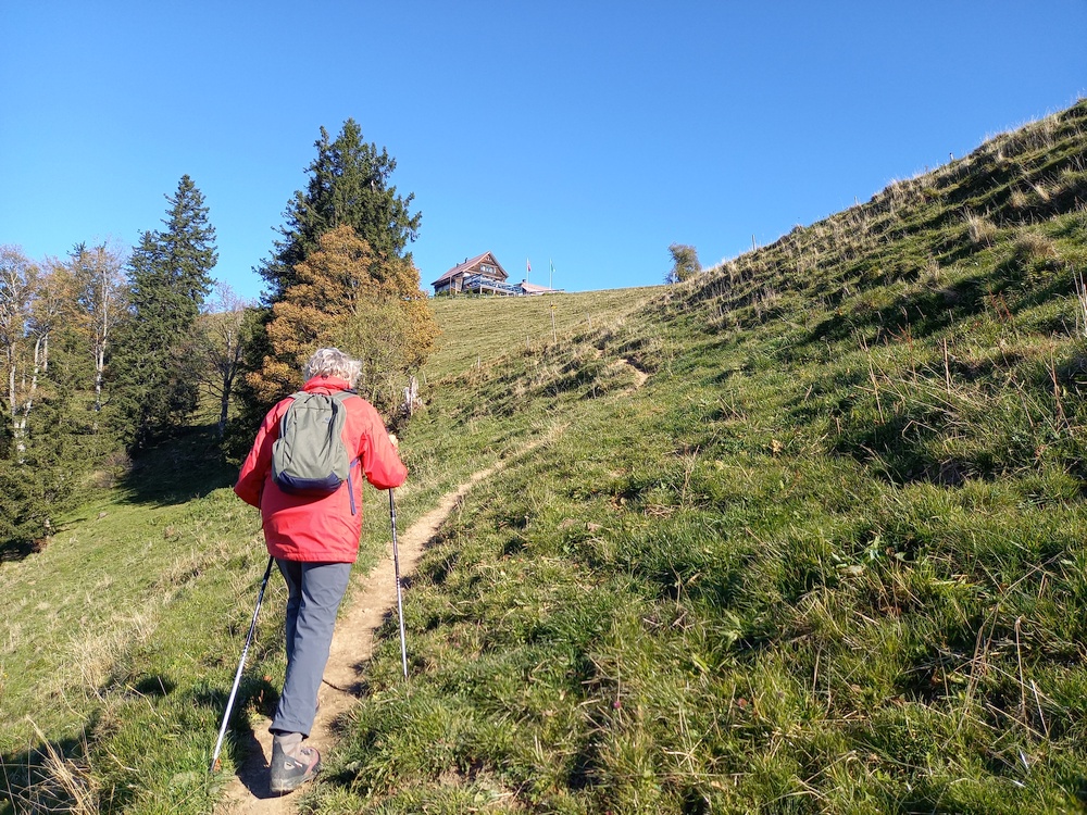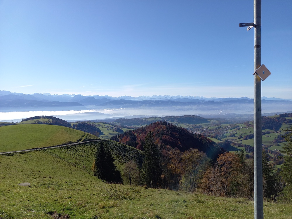 Auf der Alp Scheidegg öffnet sich das Panorama Richtung Zürichsee mit Bachtel und Rigi. Deltasegler und Modellflieger haben hier ihr Abfluggelände, und Mountainbiker erhalten gratis ein Getränk! In der gemütlichen Wirtschaft ist viel Betrieb - riesige Cordon Bleu's werden aufgetischt. Es ist das höchst gelegene Gasthaus im Kantons Zürich auf 1200 m.