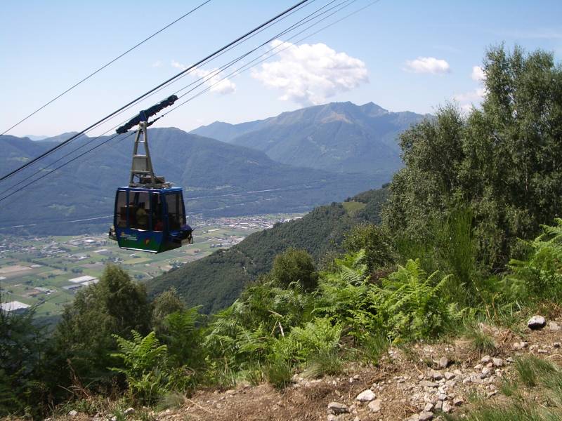 Monte Carasso - Monda - Pientina - Bergstation MorneraHinweis: Wer auf der Fahrt ins Tessin in Bellinzona im Zug nach rechts zum grossen Waldhang blickt, sieht eine lange Schneise - es ist die private Seilbahn Monte Carasso - Mornera. Der Hang ist durchsetzt von alten Pfaden, und dank den zwei Zwischenstationen können verschiedene Routen ausgewählt werden. An sonnigen Wochenenden ist das Bähnchen (8 Personen) oft überlastet - wer bei der Talfahrt in einer der Zwischenstationen einsteigen will, kann lange warten - die anschliessende Rundwanderung endet deshalb wieder bei der Bergstation Mornera.Mornera ist übrigens auch Ausgangspunkt für den Aufstieg zur Albagno-Hütte (1870m) am Cima dell'Uomo.