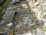 Platten-/Treppenweg führt bergauf durch den Kastanienwald. 5 Minuten später teilt