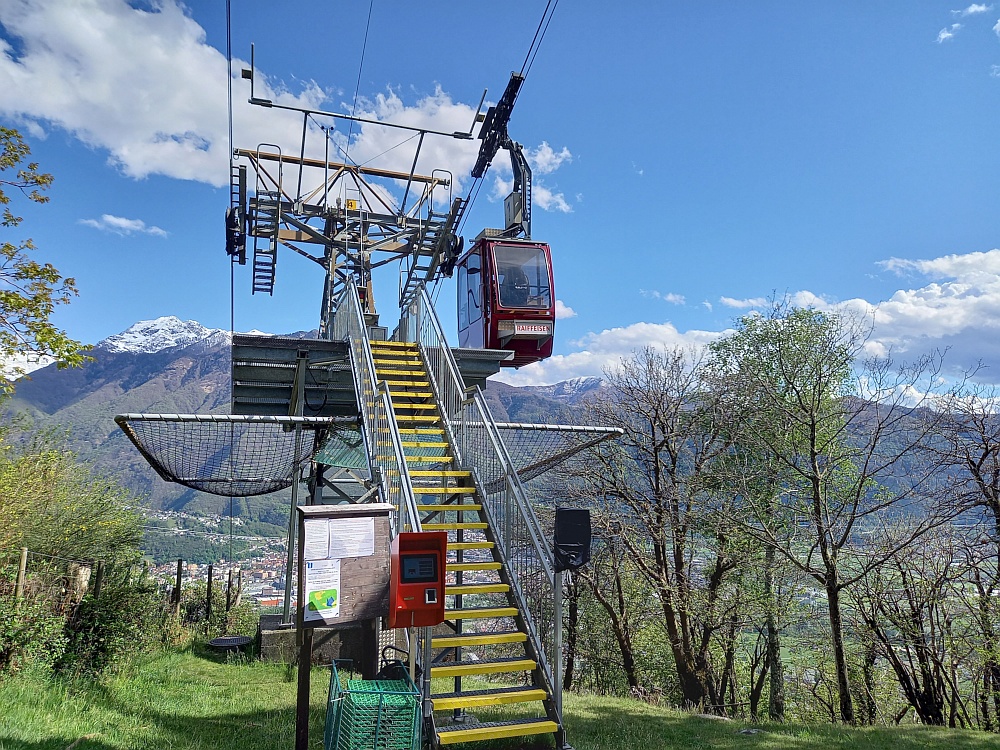 benützen (auf der Einstieg-Plattform mit Automatenknopf Seilbahnhalt anfordern - mit etwas Glück hat es Platz).
