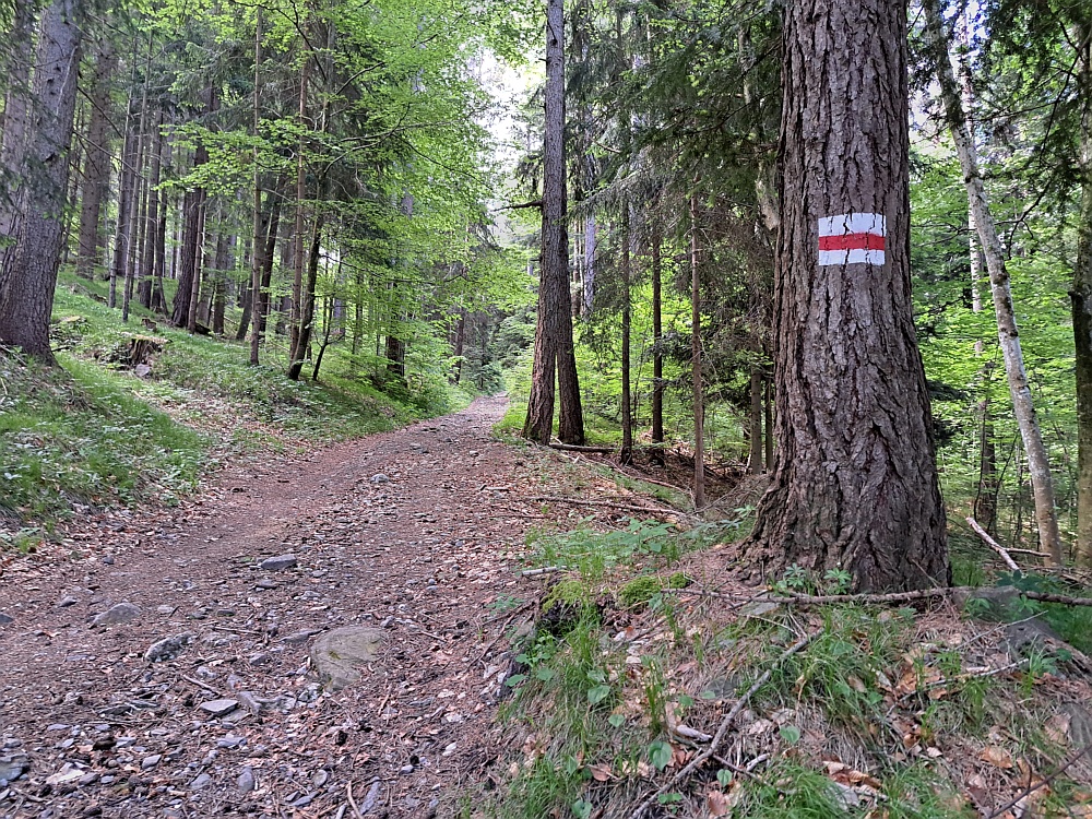 wir dem breiten Natursträsschen in den Wald hinein. Beim