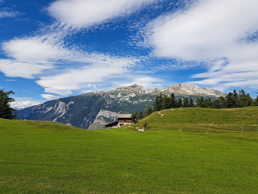 Höhenweg endet beim Friedhof der ehemaligen Walsersiedlung Maladers, wo der Abstieg nach