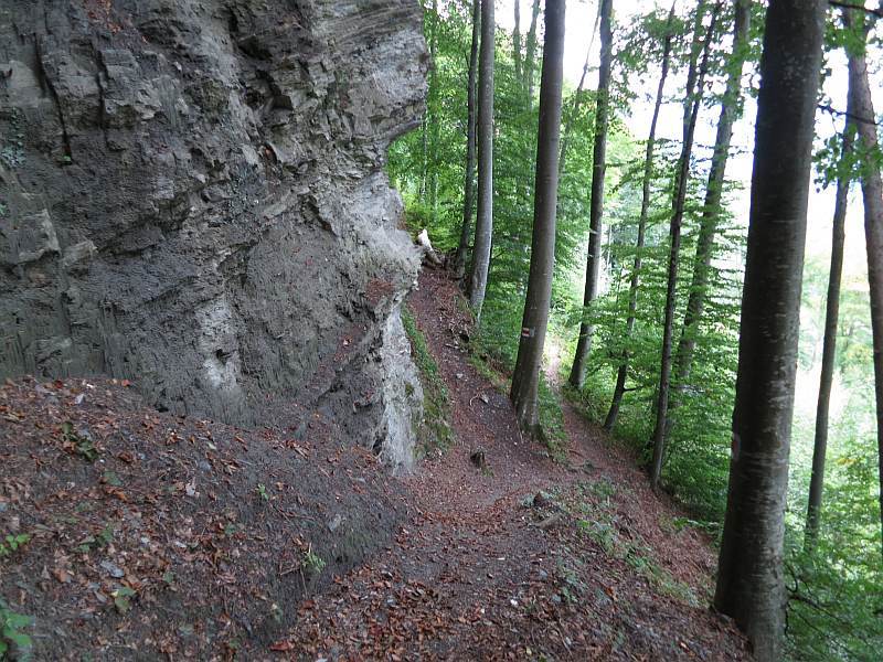 Mozentobel). Wir bleiben also am Fuss der Felsen; der Pfad