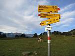 markierten Pfosten queren wir die Weide halbrechts zum Wegweiser