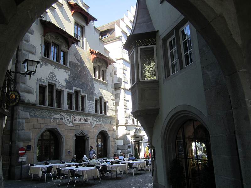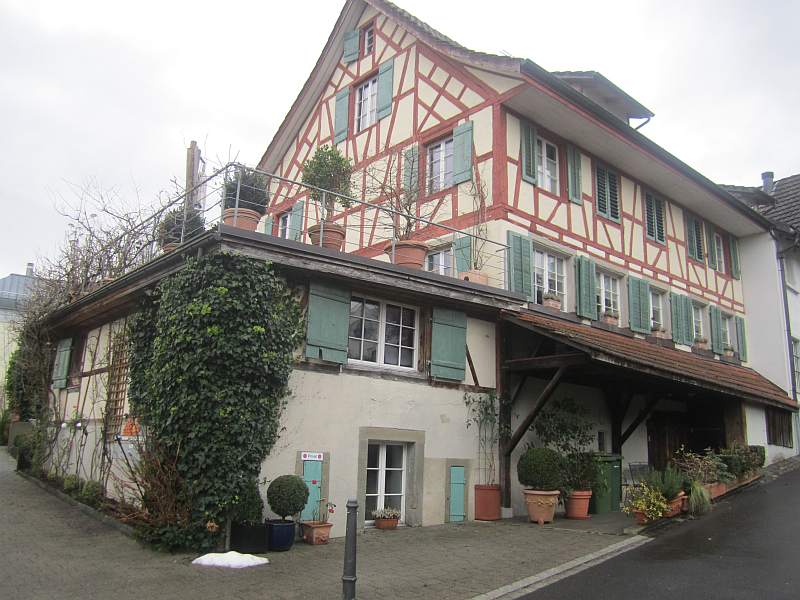 In Horgen benützen wir die Unterführung zum Schiffsteg. Hier folgen wir nicht der "Via Gottardo" (mit dem gleichen Ziel), sondern wandern 5 Minuten dem Seeufer entlang zur Sust, wo die Güter früher von den Saumtieren abgeladen und auf die Schiffe nach Zürich verladen wurden (und umgekehrt). Heute dient die Sust als Ortsmuseum.