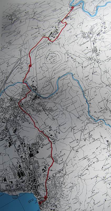 weiter aufwärts; er unterquert die Einsiedlerstrasse, wo wir