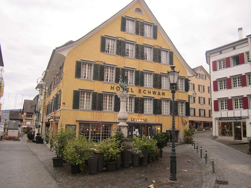 am Hotel Krone vorbei zur Sihlbrücke. Neben der