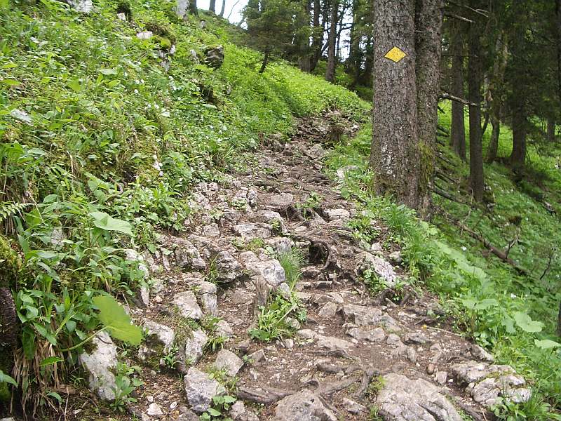 bergauf, wo sich die Wege nach wenigen Schritten teilen.