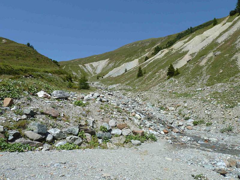 Weiter führt die Wanderung nach Usser Erb, dann über den Frauenbach und schlussendlich zur Stafelalp, wo es das bereits erwähnte empfehlenswerte Restaurant gibt https://www.berghaus-stafelalp.ch/. Da wir nach unserem reichlichen Mahl auf der Erbalp aber keinen Hunger mehr hatten, haben wir unsere Wanderung gleich fortgesetzt Richtung Frauenkirch. Von den drei Wanderwegen, die dort hinunter führen, haben wir den mittleren gewählt, also denjenigen, der links vom Sutzibach entlang führt, neben Matten vorbei. In Frauenkirch angekommen kann man dann der Landwasser entlang zurück wandern nach Davos.