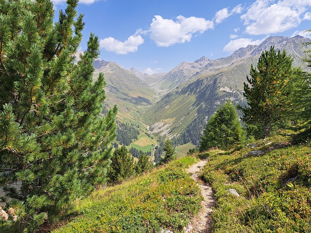 (Plan da Gudienziel), mit Sicht ins Tal mit Latsch und Bergün. Nach