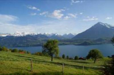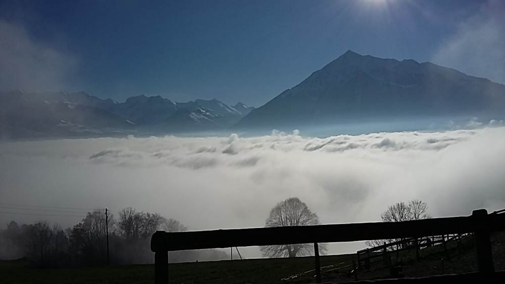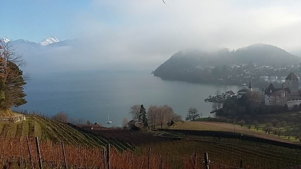 liebliche Thunerseegegend; bei guter Sicht sehen wir das