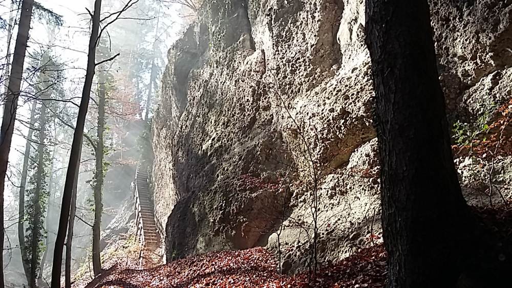 werden. Nun wieder treppaufwärts und auf schmalem Pfad im