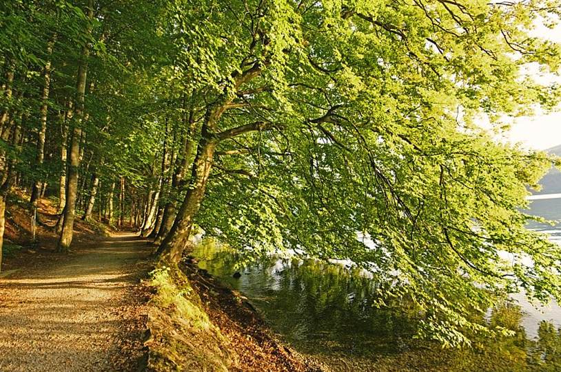 Waldwanderung auf dem Seeuferweg. Schöner Abstecher zum