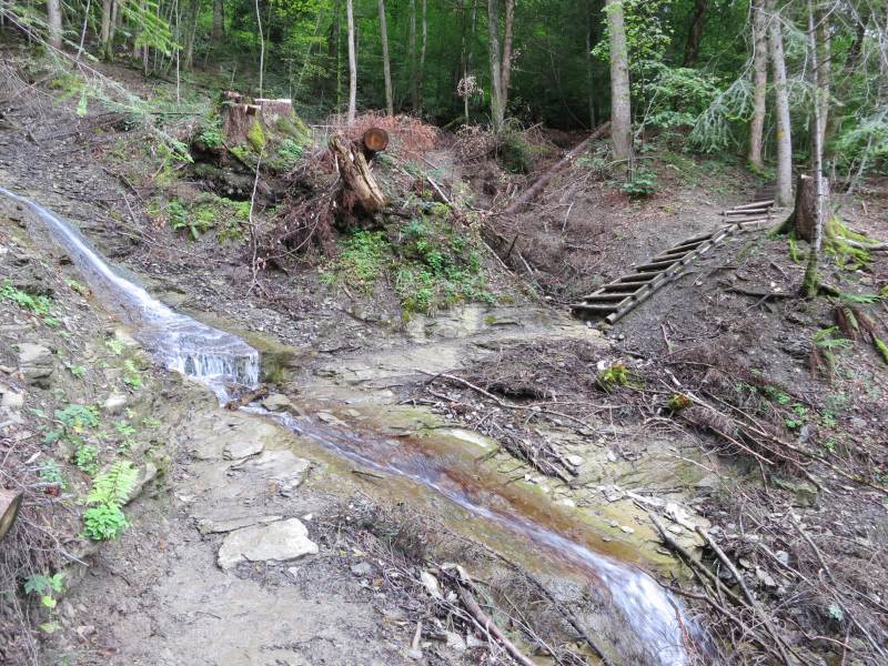 Wieder im Wald, zweigt unsere Route beim Mannebächli links