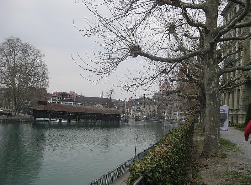 dann dem Aareufer entlang, an der Aare-Schiffstation