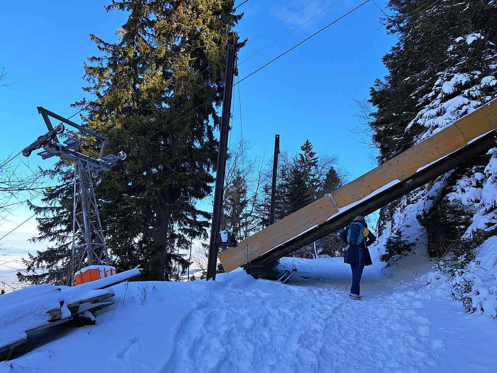 Blick ist es eine Skiliftpiste, die als Brücke über unsern Köpfen steil aufwärts