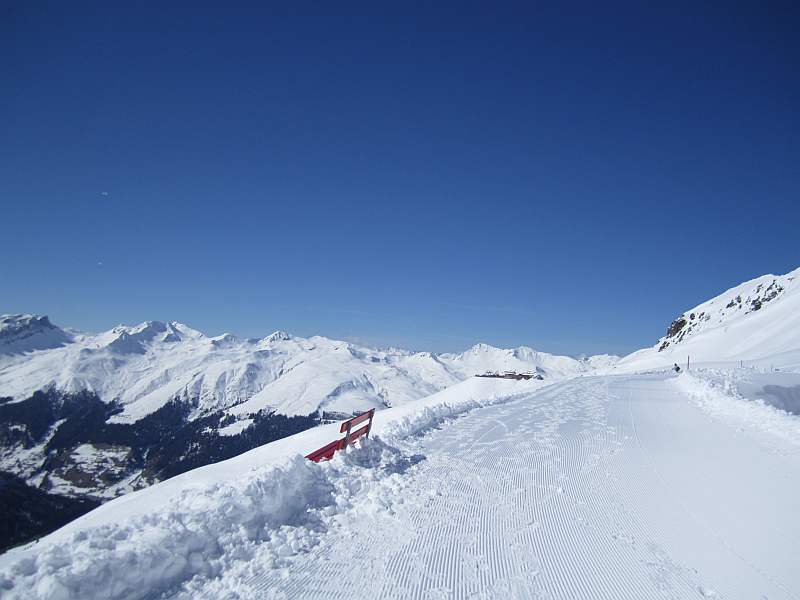 Hier wählten wir den ansteigenden Pistenweg zum Jakobshorn;
