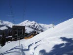 Sesselliftstationen kreuzen wir vorsichtig die Piste und